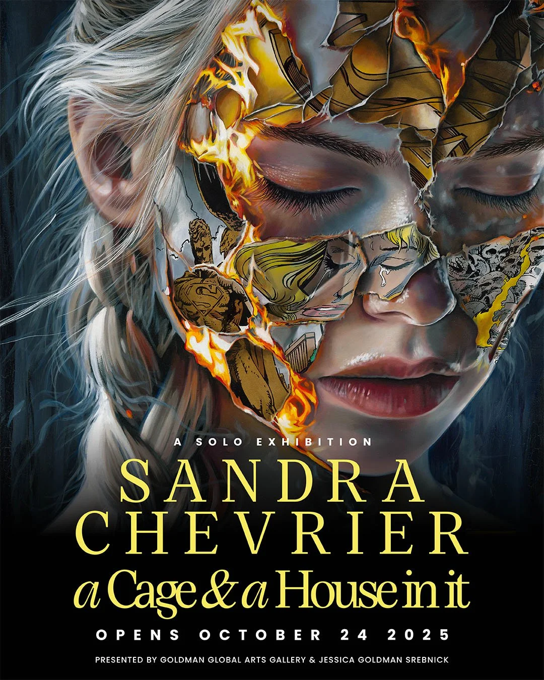 MIAMI, FL. (SEPTEMBRE 2025) – Jessica Goldman Srebnick et la Goldman Global Arts Gallery (GGA Gallery) sont fières de présenter a Cage & a House in it, le puissant premier travail de l’artiste urbaine canadienne acclamée Sandra Chevrier, qui ouvrira le 24 octobre 2025 et se poursuivra jusqu'en janvier 2026. Chevrier dévoile cet ensemble d'œuvres évocatrices à travers 35 créations en acrylique sur toile, explorant les limites et les forces qui façonnent notre identité. À travers ses représentations captivantes des masques que portent les femmes pour la société, superposées à des fragments de bandes dessinées peints à la main, le travail de Chevrier est à la fois émancipateur, saisissant et stimulant la réflexion.