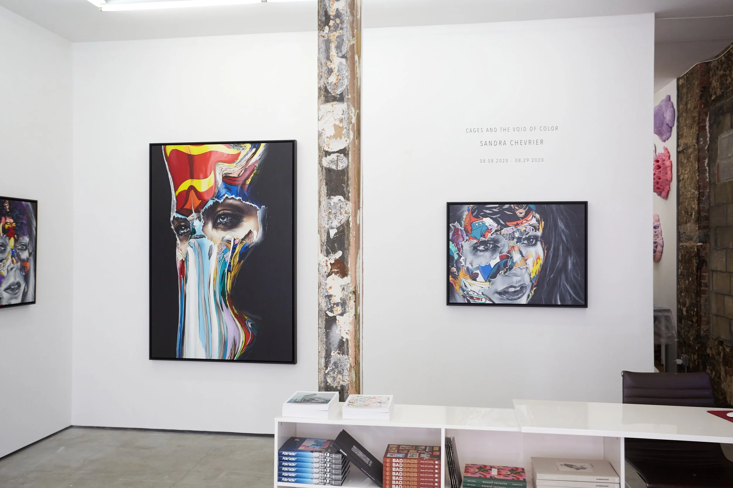 Setting the scene for the exhibition, Chevrier stated the following about our collective new normal and her inspirations behind the new body of work, “Beneath the quiet calm of the end of the world; an army of humans are pacing through their apartments. As in the past, it is a life in black and white where one hides from the plague and the war. In some kind of Apocalypse, between one world and the next; we hold still, we stand strong. We are inexperienced warriors waiting on a shapeless future in a shapeless present. We can only hope for a new chapter, a better one and we are ready to fight for it. In a dream, we leave behind the corpses of Avarice, Injustice, Hatred and Prejudice, there would be no more black waters nor smoking guns and burning forests, but more empathy, solidarity, and Love. We’ve been drawing millions of rainbows and brandishing them to the skies like weapons in hope of an answer. We are the answer. We are the cure. We are the heroes. Let’s look outside ourselves. We’ve been sitting in a void of colours for way too long.”