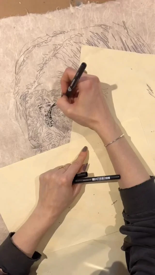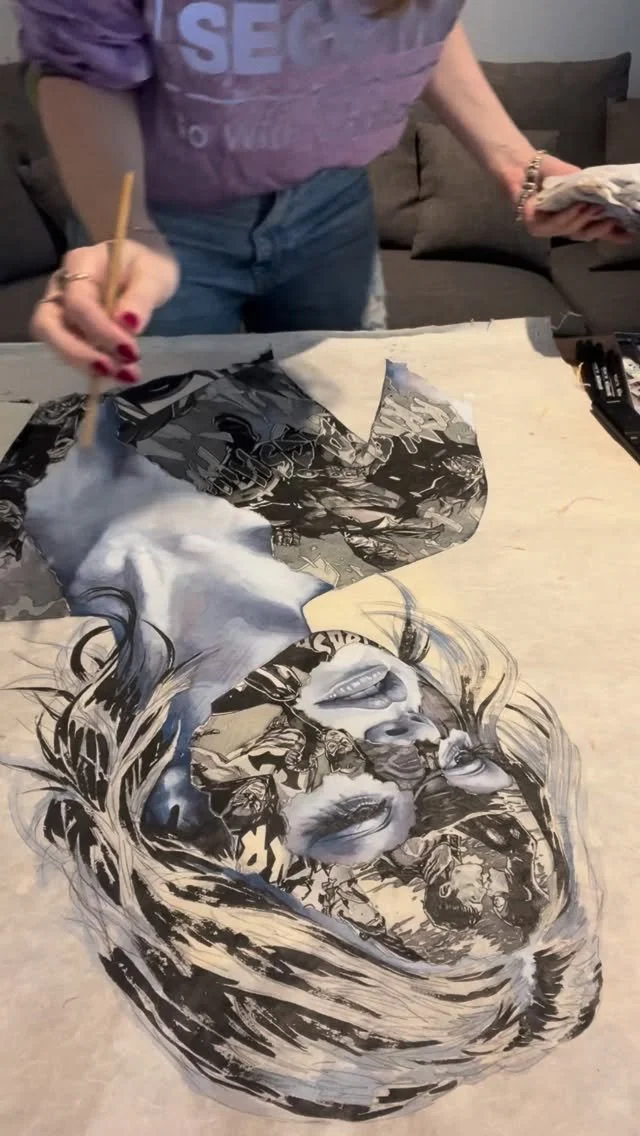 That’s basically what Yasha Young said to three artists this week in Berlin. Of course Hera from Herakut said yes, having caught a few tags in her career. So did Mimi Scholz and Sandra Chevrier, studio artists who have done some work on the street and jumped at the idea – Chevrier actually flew from Montreal just to fool around with these sexy portraits. Together, the three have made a beautifully tattooed and magic mess of all of your favorite iconic photographs by Mario Testino in this exhibition called “Undressed”.